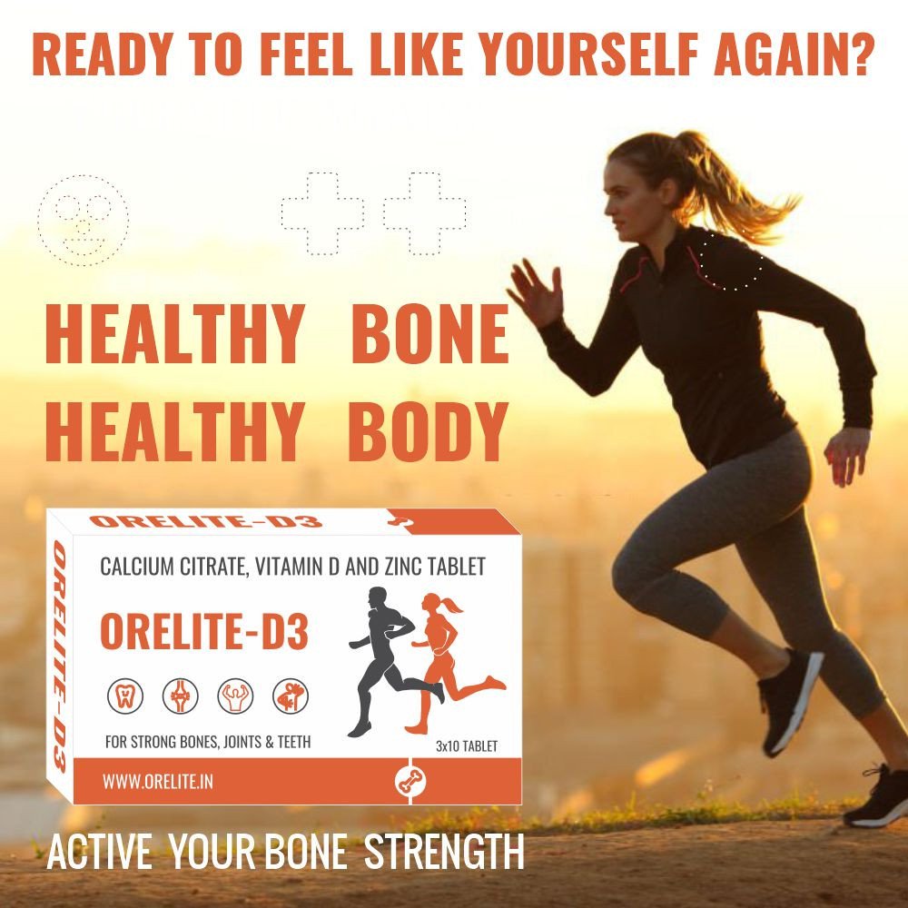 ORELITE-D3 supplement is enhanced with Vitamin D, which assists with Calcium absorption and immune support. Body cannot produce Calcium, ORELITE-D3 along with balanced diet and regular exercise is a smart choice for ensuring adequate Calcium intake throughout life. You will get the benefits of Calcium and Vitamin D3 in easy to swallow tablet. It is ideal for promoting bone, muscle and nerve health. Calcium and vitamin D are essential to building strong, dense bones when you are young and to keeping them strong and healthy as you age. It is a mineral that is necessary for life.